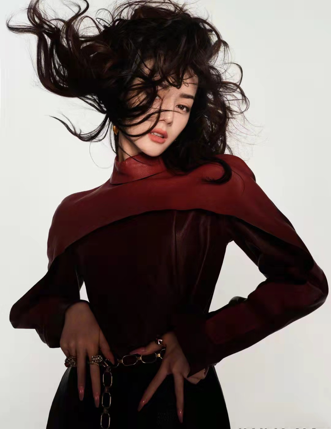 这样的风格虽然大胆明艳,但不适合迪丽热巴,显得过于夸张。但是这样的图片却在角度和造型都跟范冰冰的造型图片类似,明明不适合还要去尝试,到底是迪丽热巴要模仿,还是杂志造型师和摄影师的锅呢?