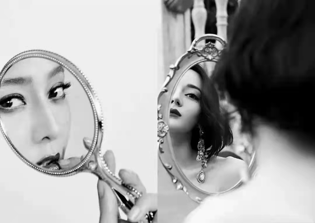甚至工作室晒出的照片,迪丽热巴拿着和范冰冰类似的铜镜,拍摄自己在镜中的样貌,眼神皆是勾人又随意,滤镜都是一样的。