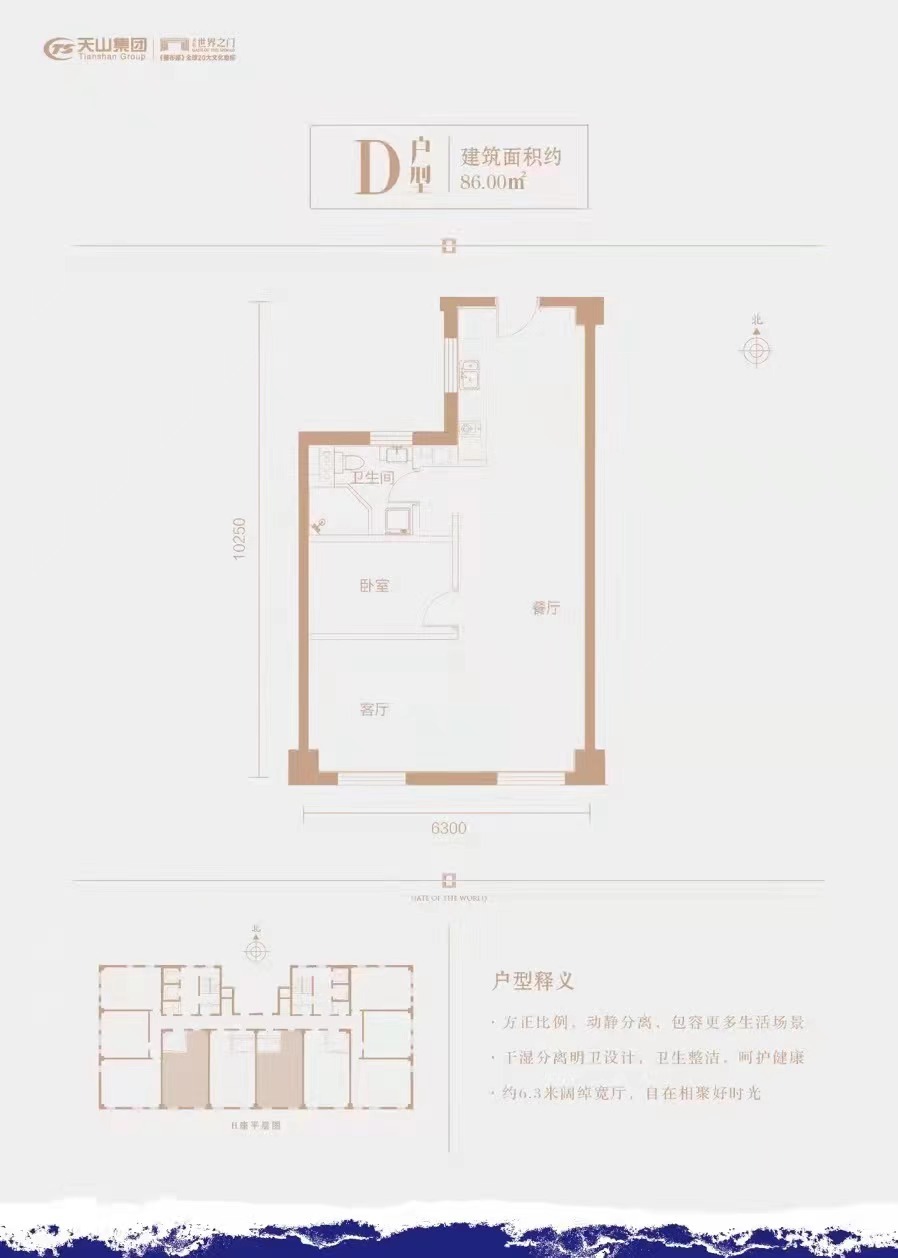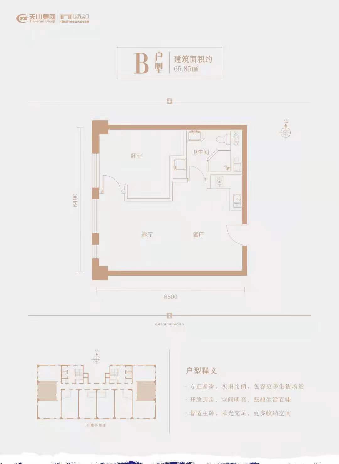 根据产品不同,项目主力户型为建面约65-86㎡LOFT产品,均价约12800元/㎡。世界之门作为东南部稀缺的LOFT产品与同板块高层新房的万科·翡翠四季14500元/㎡、华远昆仑赋16000元/㎡相比价格较低;再加上世界之门所处的天山海世界商圈以及地理位置,发展潜力巨大,未来具有可观的保值性。