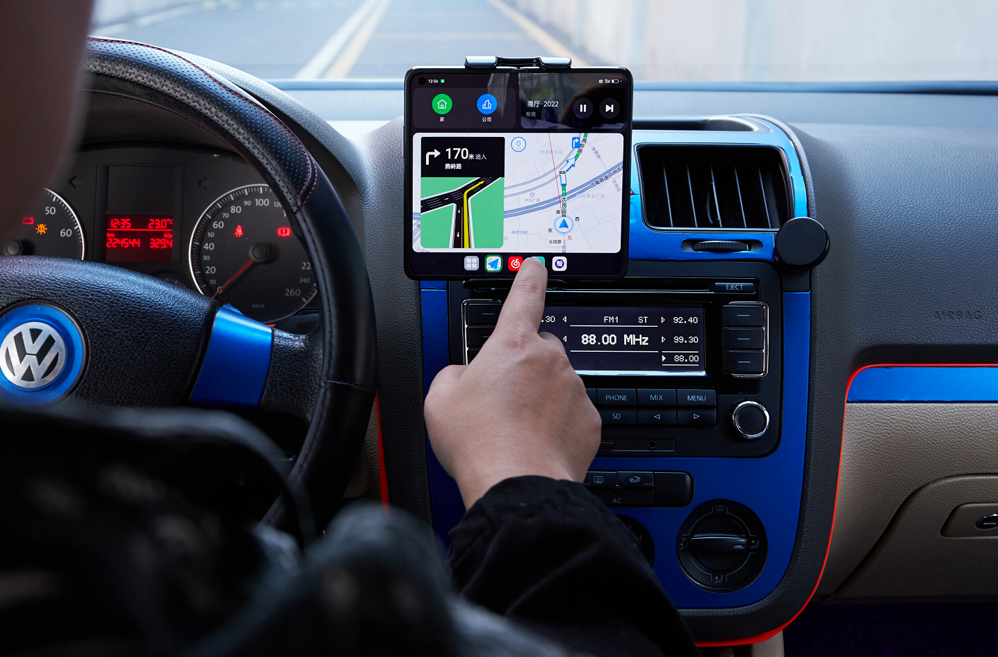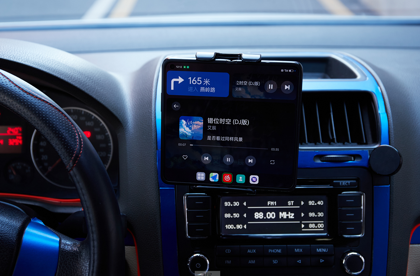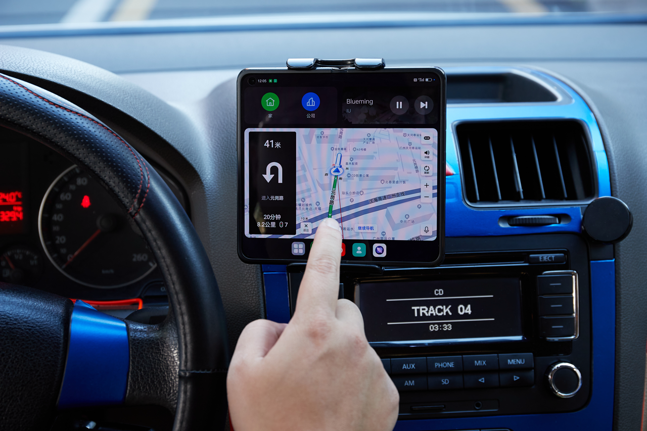 要是老车没有cp嘛.....那也不是没有办法,最新发布的折叠屏产品OPPO Find N就有“驾驶模式”,拥有Find N的用户只需要在设置-大屏专区中就能开启驾驶模式,在展开的情况下有7.1英寸的大屏,配合车道级导航,这体验丝毫不输某些小屏中控的车啊!