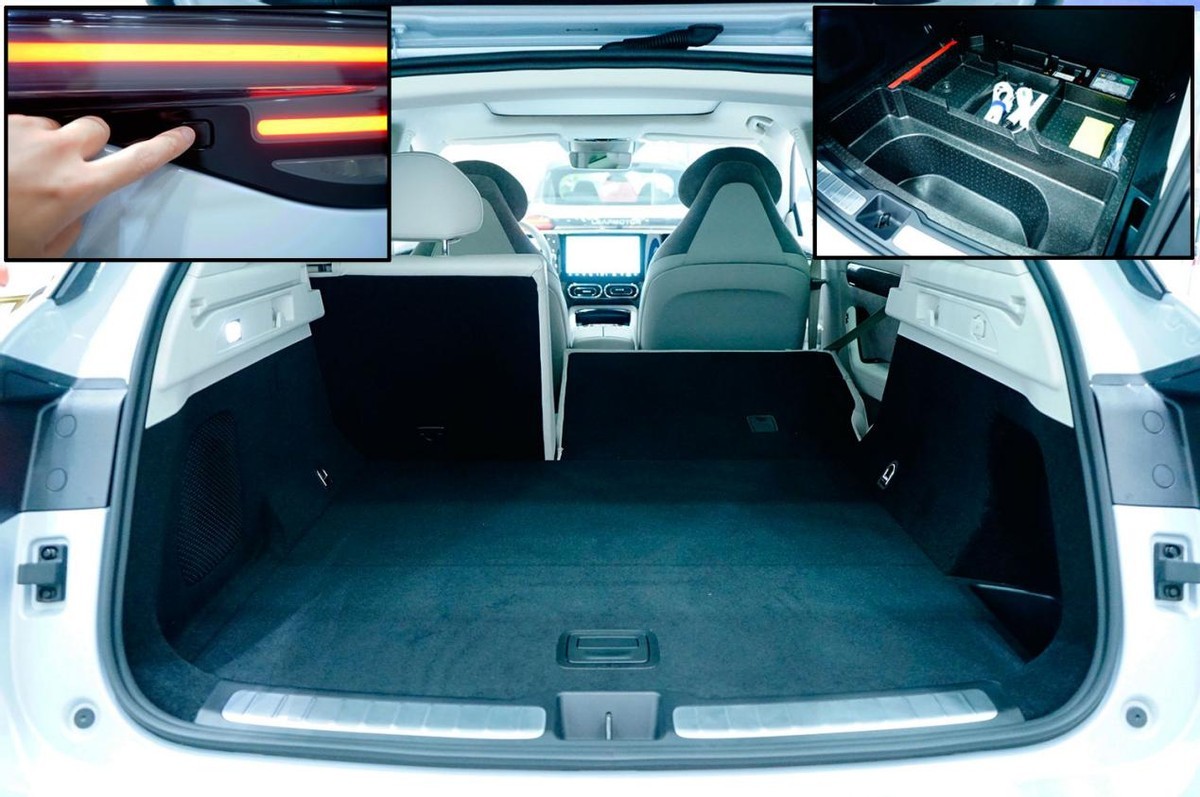 尾厢两侧侵占不算多,宽度表现不错,但纵深一般、高度正常,常规容积为427L,在中级SUV这个数字不算大,主要是因为后悬垂做得不算长,不过应对4个人的长途出行基本也够用了。后排座椅支持4:6比例放倒,但平整度不算高。地板下方还有一层泡沫储物格,内置充电枪、补胎液和三角架等工具。选装包里包含了电动尾门带位置记忆和防夹功能,尾门开启按键隐藏在右尾灯内。
