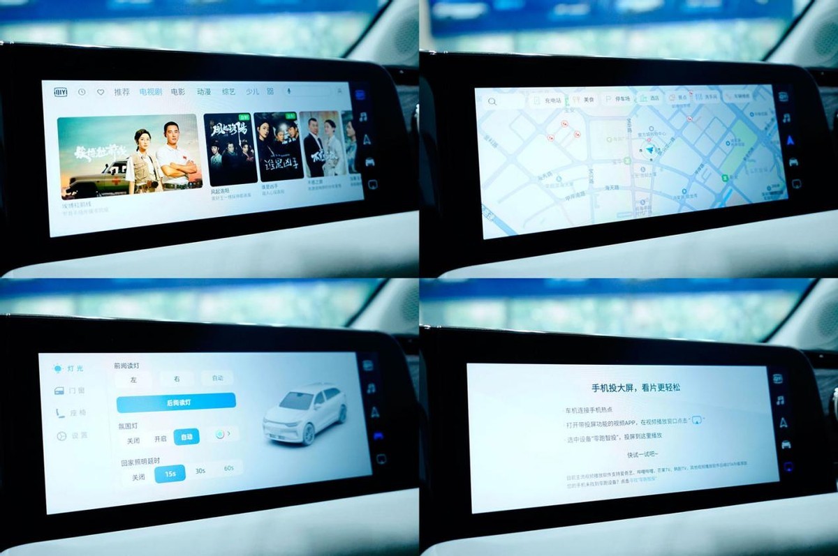 副驾驶配备的10.25英寸液晶屏幕也是全系标配,能通过屏幕对车辆灯光、门窗、座椅等硬件调节,功能权限也比较高。还能帮助设置导航、查看实时路况,并能够将设定好的导航信息直接同步到中央屏幕,实现双屏互通。当然,也可以打开内置在线视频、音乐和手机投屏让副驾驶享受自己的娱乐时间。