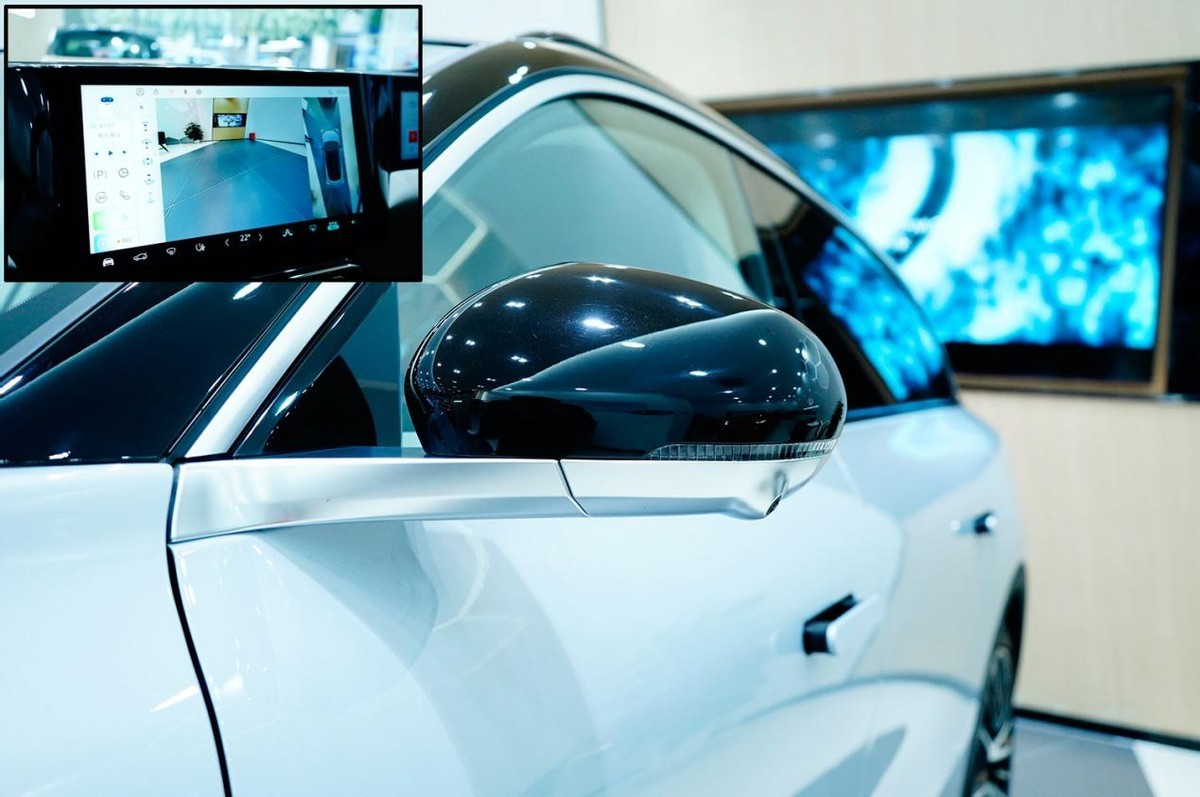 外后视镜采用双色拼接,水平托架采用镀铬装饰,与镀铬窗线很匹配,底部集成的摄像头虽然很明显但并不丑。上方的外罩有一道倾斜的棱线带来不同的反光效果,两者结合处集成了侧转灯。全系标配电动调节、折叠、记忆、加热、倒车自动下翻和锁车自动折叠。