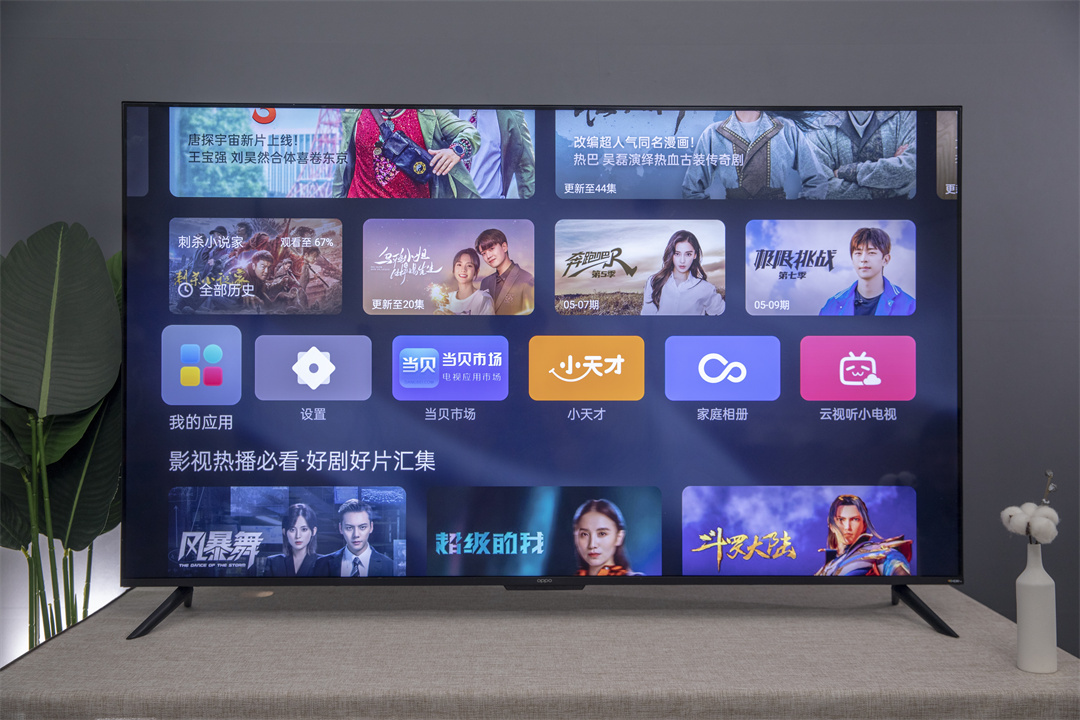 系统方面,OPPO智能电视K9 内置了ColorOS TV 2.0,支持多设备的智能互联,当手机或者智能手机与电视连接后,不仅能充当遥控器,还解锁超多的操作玩法,比如说用手机连接可以用键盘辅助输入文本;手表连接支持智能音量控制与睡眠感知等功能非常智能。在内容上ColorOS TV 2.0不仅整合了优酷酷喵、芒果TV等业界主流视频平台,内容范围覆盖热门电影、影视剧集、综艺等领域。还扩充了专栏内容,新增短视频和体育板块,从此用户的选择范围不再局限于院线大片和热门综艺,空闲时间甚至可以在电视上刷短视频,这样的创新着实给人一种惊喜的感觉。