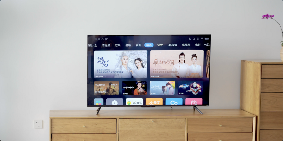 先来看一下这两款电视的速度方面的对比。OPPO智能电视K9开机非常快,打开电视立马就能进入资源界面,开机速度也就在十几秒左右,另外OPPO智能电视K9没有开机广告,所以也不用手动跳过。