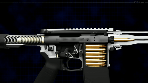 另外的问题,装填完成了,那么闭锁呢?从下面这张图的模拟里看到,5.56*45mmNATO在95的枪膛里的时候,弹壳底部还是在枪膛外面的。在枪膛外面的话,是无法完成闭锁的。无法完成闭锁,你就别寻思击发了,就算击发了,严重了就得去吃席了。