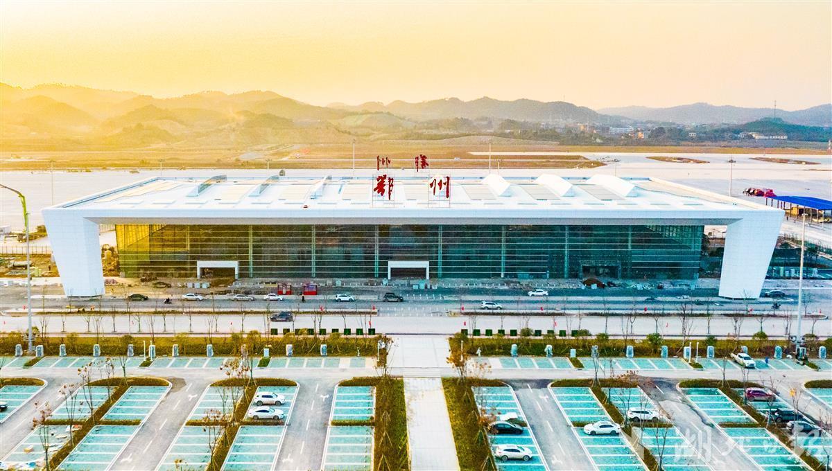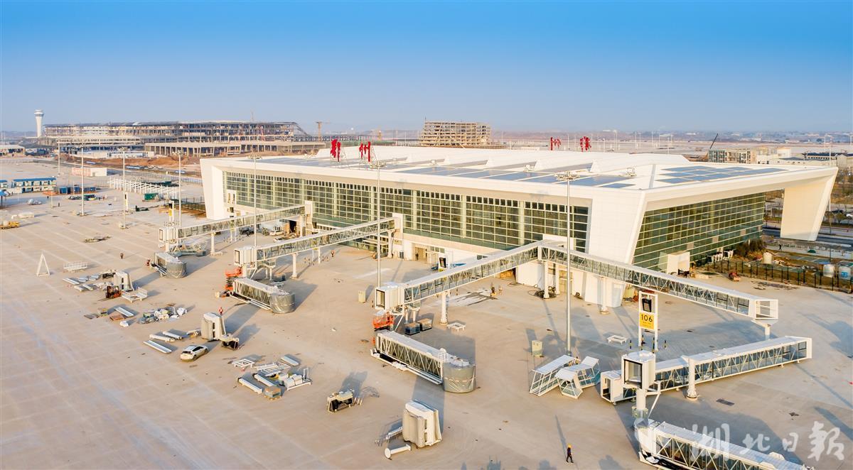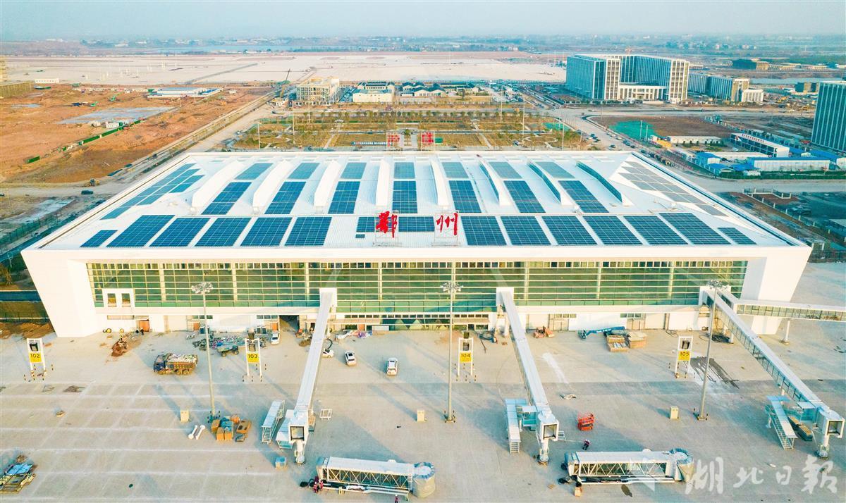 12月17日,面貌一新的鄂州花湖机场航站楼。据介绍,目前鄂州花湖机场的主体工程已进入收尾阶段,已经完成与校飞相关的跑道工程、灯光工程、通信工程、导航工程、监视工程以及气象工程的竣工预验收工作,年底可建成校飞,明年年中有望实现投运。(湖北日报全媒记者 薛婷 通讯员 何旭峰 摄)