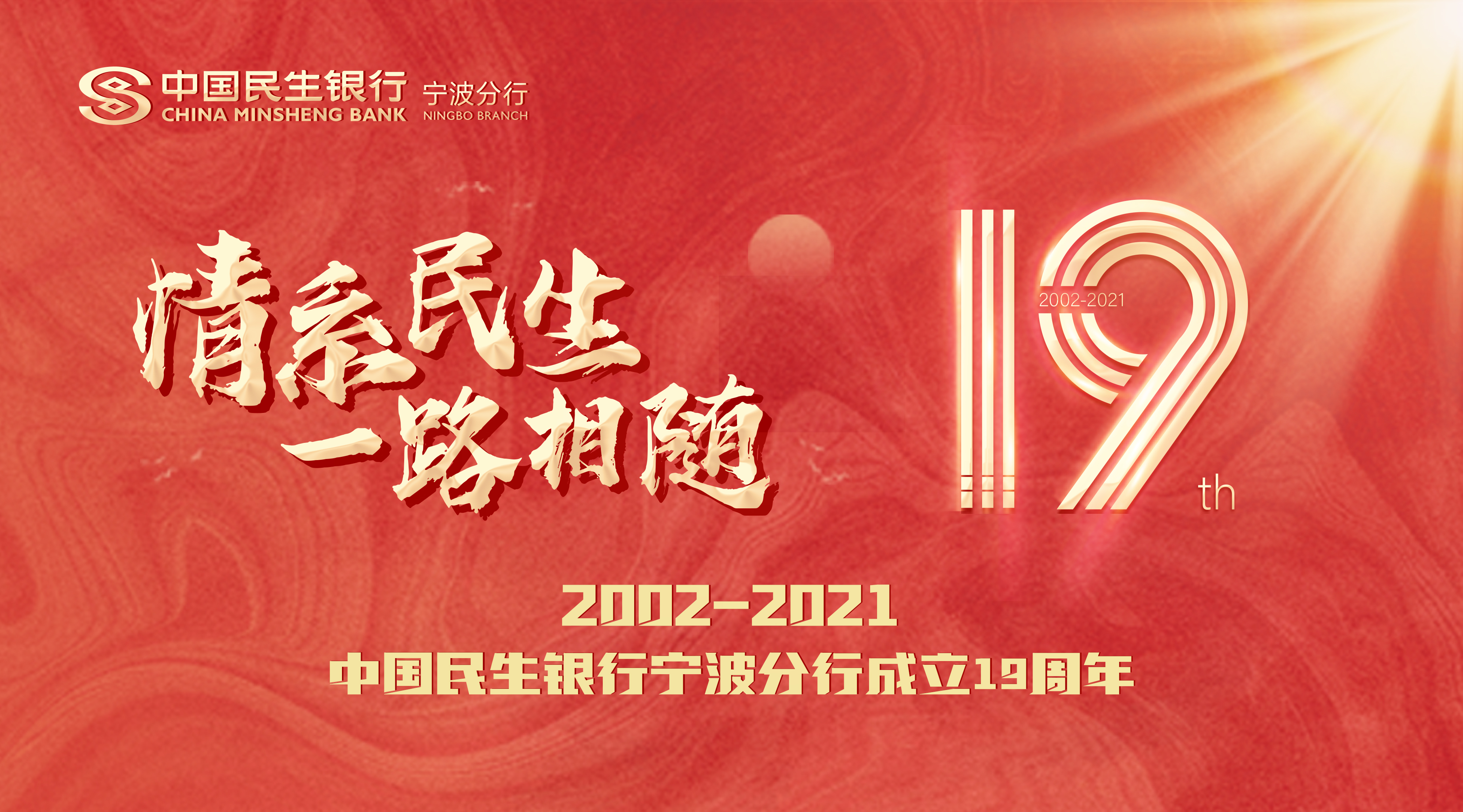 2021年12月19日,是民生银行宁波分行19周年的纪念日。在“十四五”开局之年,民生银行宁波分行以庆祝建党百年为契机,牢记“服务大众,情系民生”企业使命,坚持党建引领、紧跟国家战略、深耕实体经济、服务百姓民生,为助推宁波高质量发展注入了源源不断的金融力量。