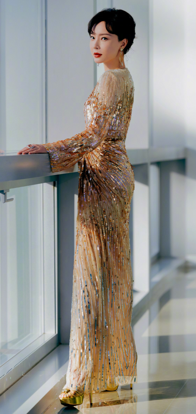 近日,知名艺人陈数在自己的社交平台上晒出了自己参加某时尚风格大赏的造型,她身穿着金色闪片低胸裙,搭配着黄钻配饰,显得陈数优雅知性气质愈发动人。
