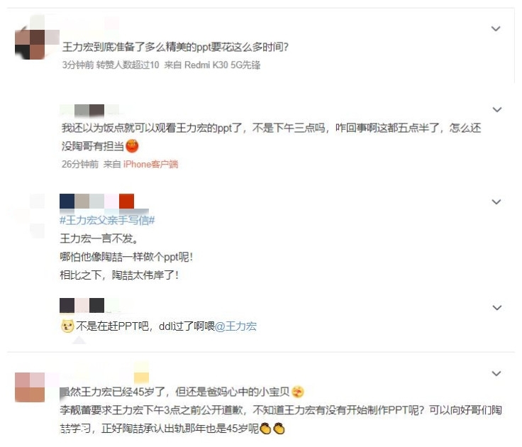 不知道此时此刻,王力宏是在制作道歉PPT,抑或是打算像李靓蕾说的那样“躲在家人背后、由其他人出来收拾烂摊子”呢?