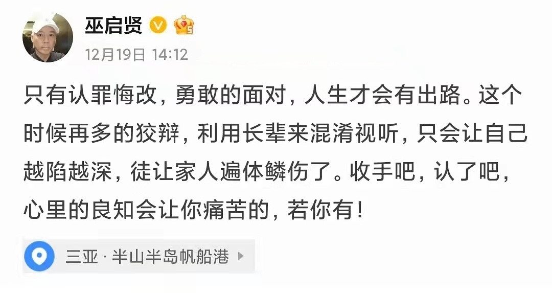 也难怪巫启贤喊话王力宏:“收手吧,认了吧,心里的良知会让你痛苦的,若你有”。而莫文蔚作为曾与王力宏同公司的师兄妹,也在刚刚取关了王力宏。