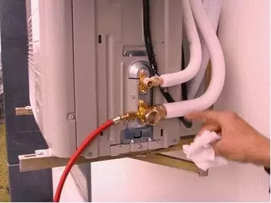 5.归还内六角板手用来打开液管阀(细管二通阀1/4圈),约10秒后关闭,用检漏枪或者肥皂水检测连接头等位置。