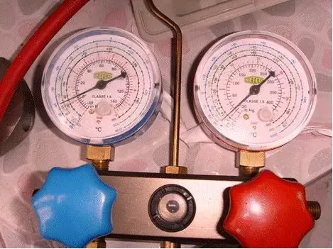 我们先看看未接表前压力表的数值...双头表是这样的...(左蓝色,右红色)