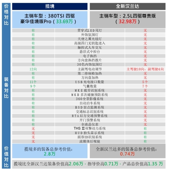 揽境和汉兰达的动力PK