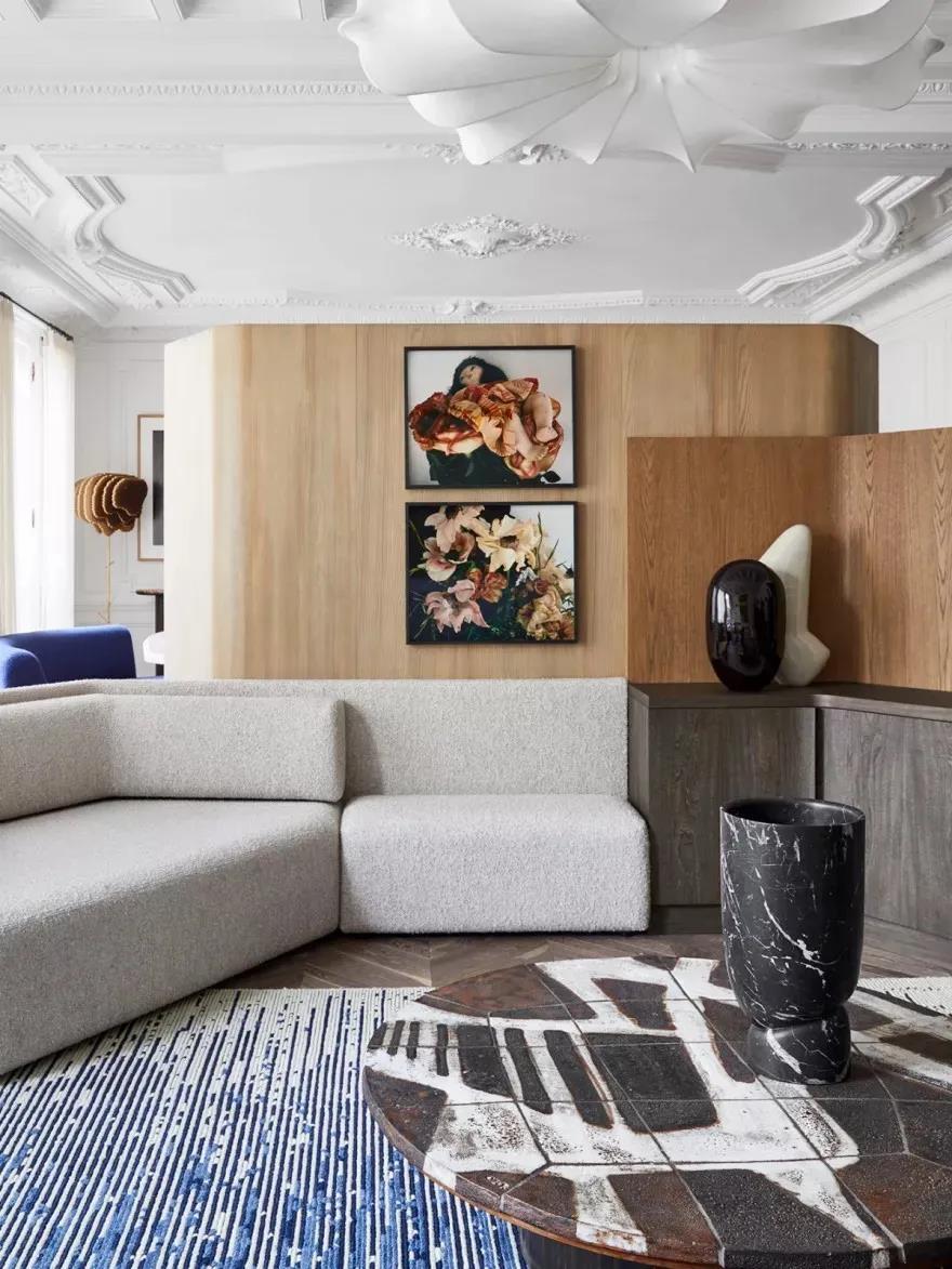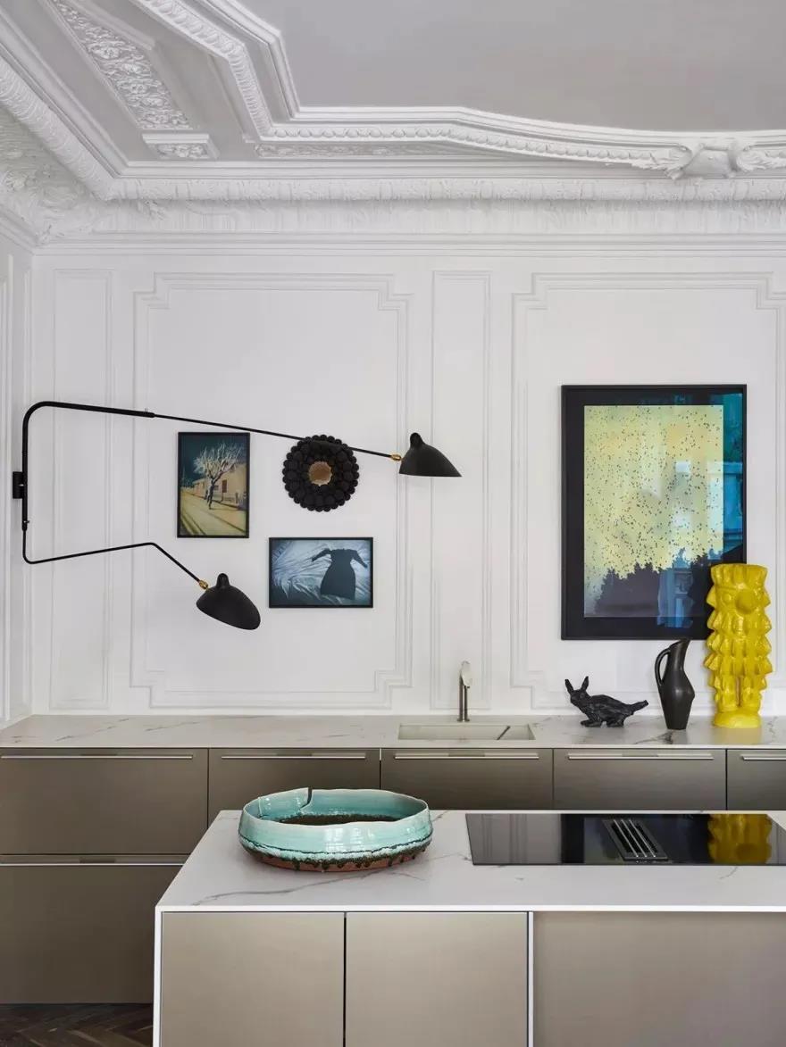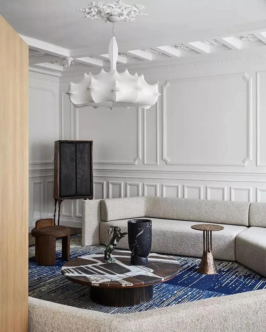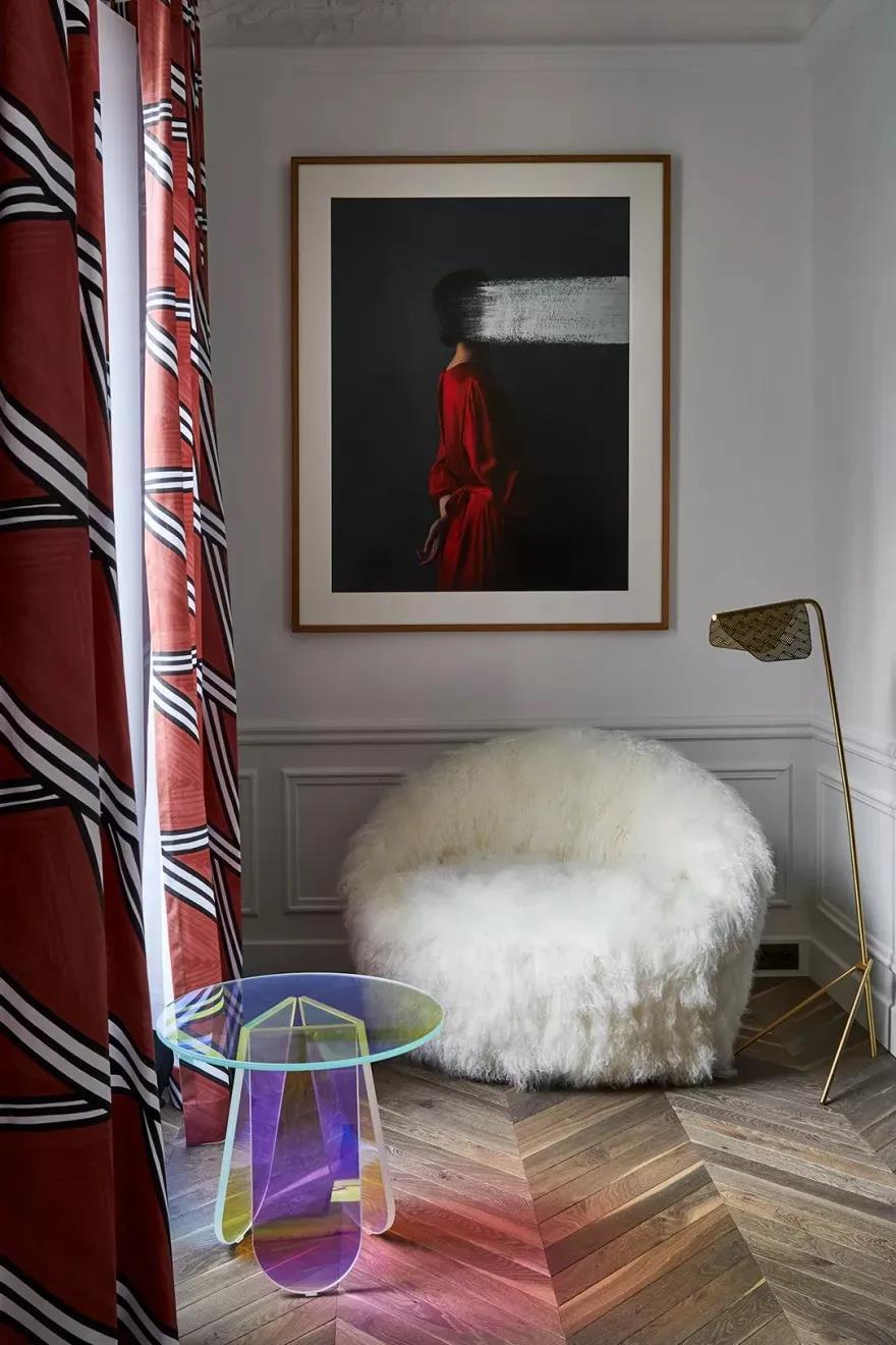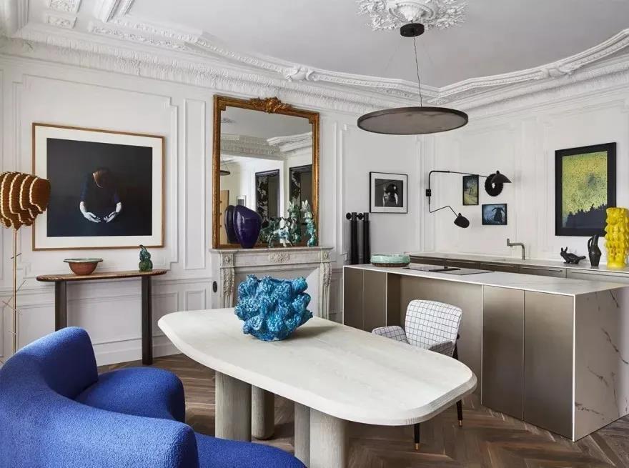 折中主义是在19世纪后期开始实施的,设计师在保留以往历史风格的同时,创造出新的设计。在融合的同时,提供给设计师无尽的灵感来源。Grand Art公寓可以说完美体现了当代法式折中主义,既保留了强烈的历史感,又打造出了具有现代感丰富多彩的艺术空间。