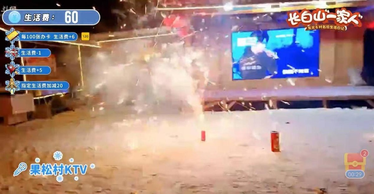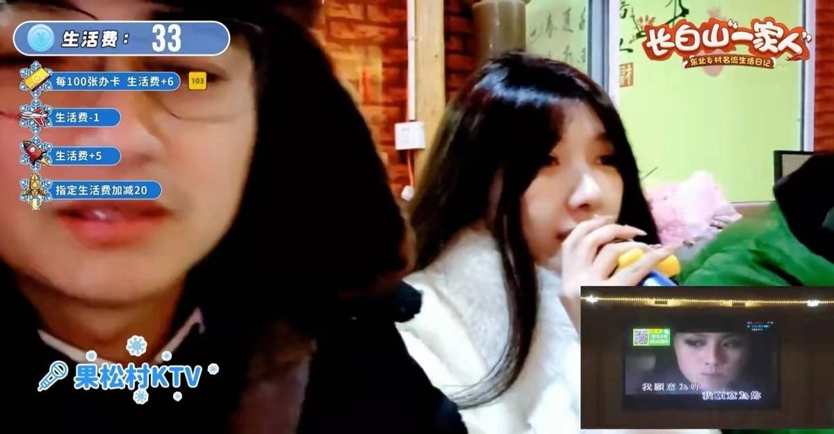 到了第二天的时候,官方依旧在晚上安排了活动。第一场活动,大家聚集在一起唱KTV,而大舅哥也跟兔兔一展歌喉。有意思的是兔兔没有化妆,素颜竟然更加清纯可人。主持人准备了几首歌,采用接歌的模式,每个人唱几句歌词。大舅子和兔兔则唱了几句王菲的《我愿意》。后来大家也开始随意点歌,看得出来大舅子虽然唱歌很好听,也不跑调,但对唱歌的热情不高,因为节目组还安排了放烟花的活动,这才是大舅子最期待的部分。