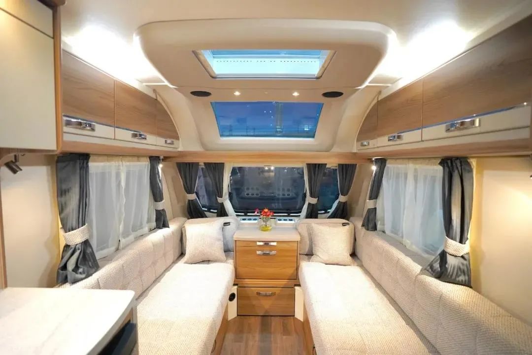 车身和车顶采用了保温隔热非常好的效果GRP材料,即使在零下15摄氏度的低温环境中也能保证车内的温度适合居住;车身外侧配有驻车支腿,保证驻车时车身稳定;车尾配置了拓勒自行车架,方便携带自行车。