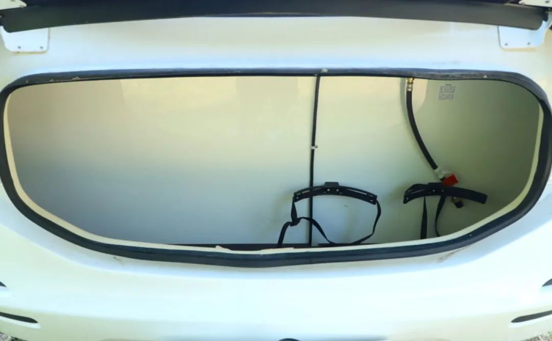 车身前部还设有内置隐形式储物舱,足以存放两个燃气罐,也可以放置一些小型物品。