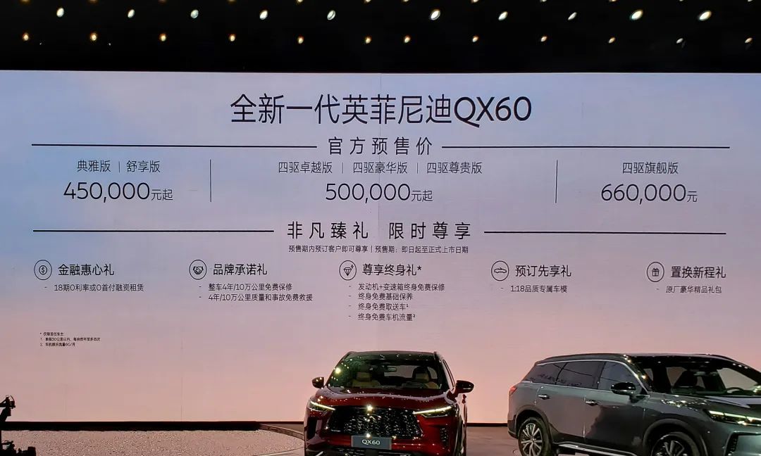 据了解,QX60是英菲尼迪旗下一款中大型SUV,自第一代车型开始就通过进口的方式引入国内销售,采用由2.5T+CVT组成的油电混动系统,国内售价47.98-56.98万元。