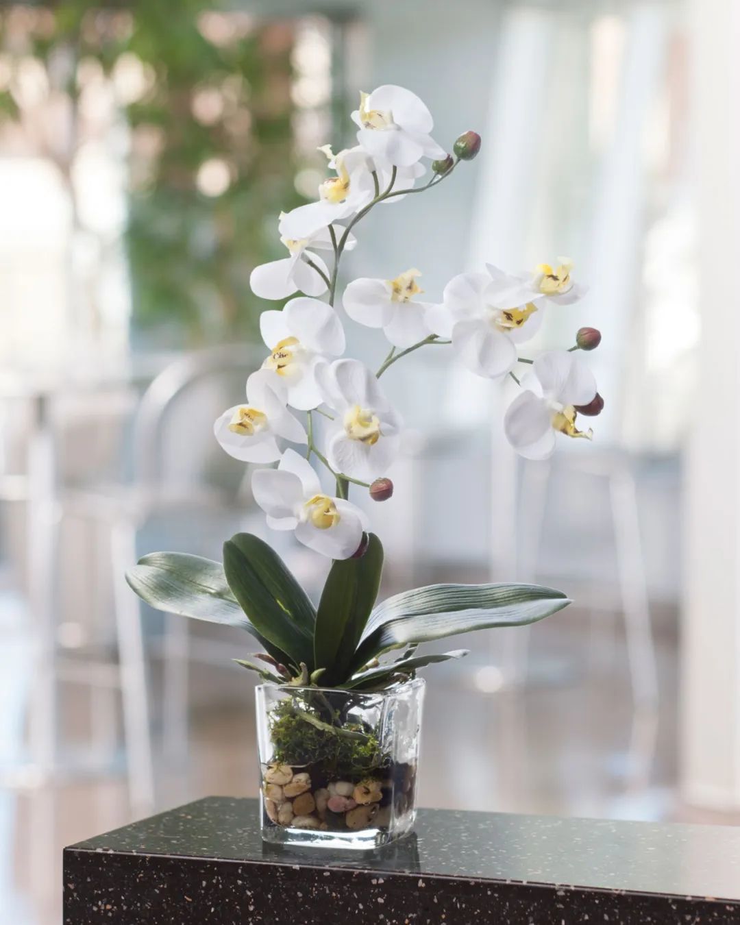 蝴蝶兰一般都是养在朝东的窗台边的,如果北窗台上每天有3~5小时左右的柔和光照,就可以将它养在窗台上。