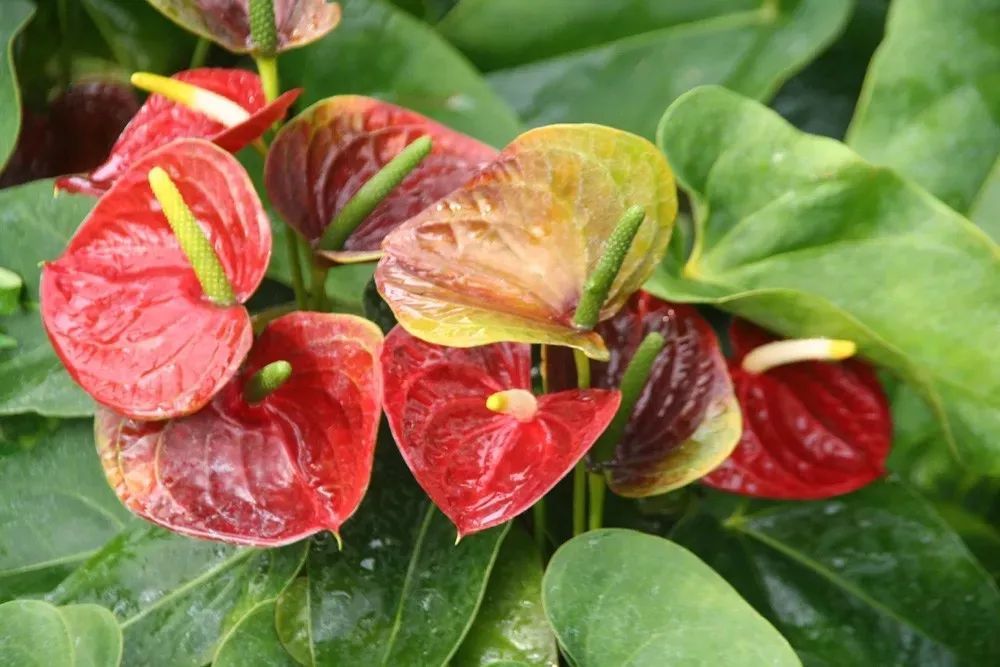 红掌就是我们平常所说的“花烛”,它是比较适合养在北窗台上的,特别是在花期,它们在观赏期的时候,摆放在光线明亮,环境通风和有较高湿度的地方,可以适当延长花期,这个也是养护室内开花植物的一些小技巧。