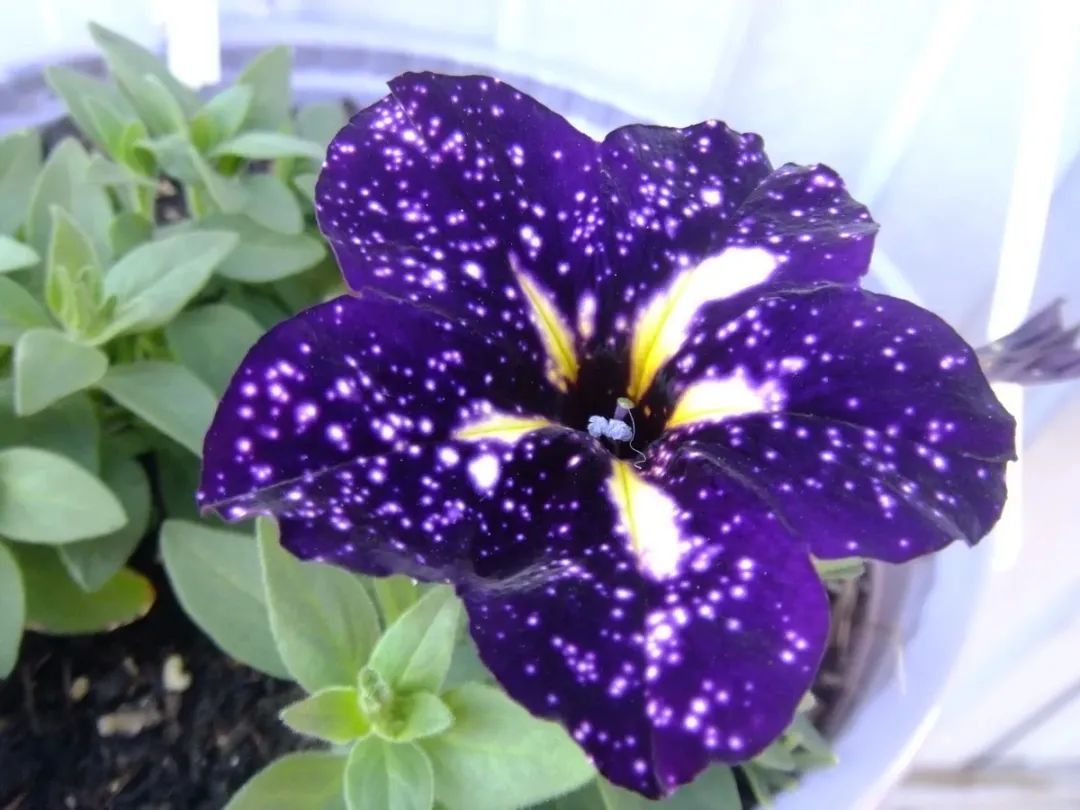 星空矮牵牛是一种杂交培育出来的品种,特别受欢迎,春节前后去逛花市的时候肯定就能发现它的身影。