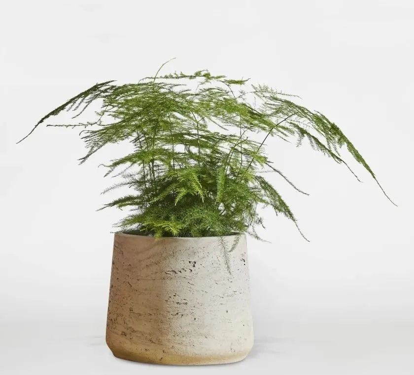 文竹是长相比较清秀的一种观叶植物,它的叶子特别细小,它在自然界可以养成爬藤植物,养在卫生间里就变成了小巧的盆栽,将它摆放在窗台上,有适当散射光,保持较高的空气湿度,可以经常开窗通风。