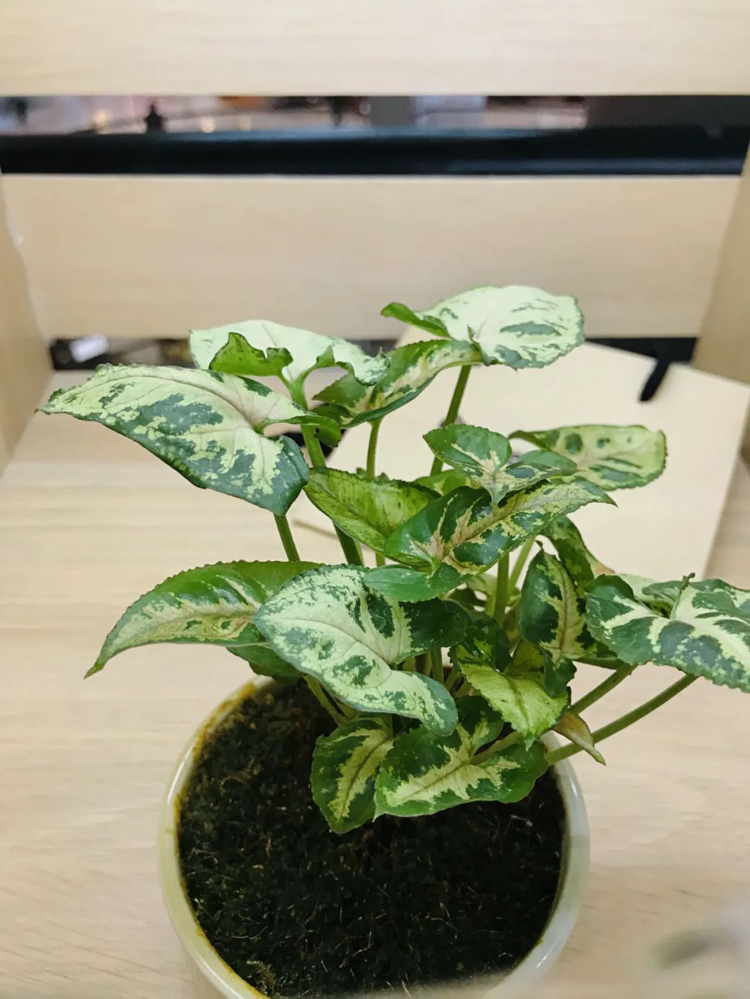 合果芋是非常耐阴耐湿的一种观叶植物,特别喜欢高湿度的环境,是可以水培或土培养护的,它的叶子上有着不规则的白色斑块,如果散射光越是充足,叶片上的斑纹就越显眼。