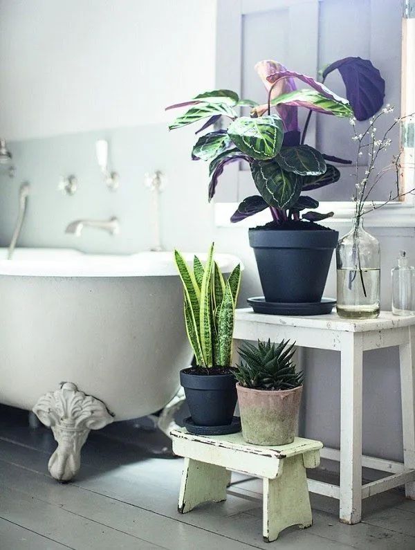 很少人会想到在卫生间里养一些盆栽植物,其实有很多水培的植物和观叶植物都可以养在卫生间里。卫生间里最大的特点就是光照不充足,且湿度特别高,温度还会经常波动,就比如洗热水澡的时候。