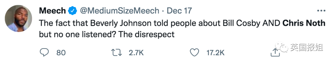 “贝弗利早就给大家说了比尔·考斯比和克里斯·诺斯的事情,但没人听?太不尊重了。”