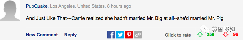 “就这样…凯莉(女主)发觉自己没嫁Mr.Big大先生,而是嫁了Mr.Pig猪先生。”