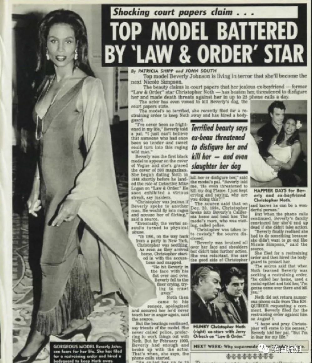 自1990年起就和克里斯开始交往的超模贝弗利·约翰逊,她身边的好友对记者透露:在这段感情之初,克里斯暴露出他严重的暴力问题,因为嫉妒女友和其他男性说话,交往第二年直接动手暴揍。这里,记者用的是“一遍遍地挥拳暴揍”的形容。