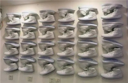 它家不光面有个性,连装修也独特,有一面鞋装饰的墙面。