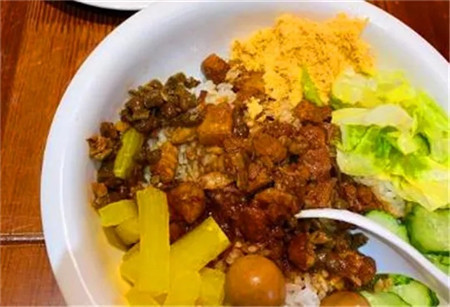 台湾卤肉饭,也是他家的主打招牌,一碗油浸浸的卤肉饭,半肥瘦的猪肉粒,浓郁的肉汁浸入米饭中,香香的。他家的卤肉吃起来肥而不腻,超级诱人。