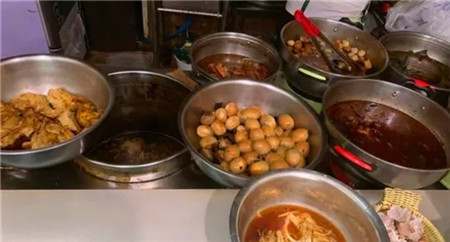 小店不大,特别是饭点的时候,还是略显拥挤。前台摆放着一口口的锅,里面各种卤味。