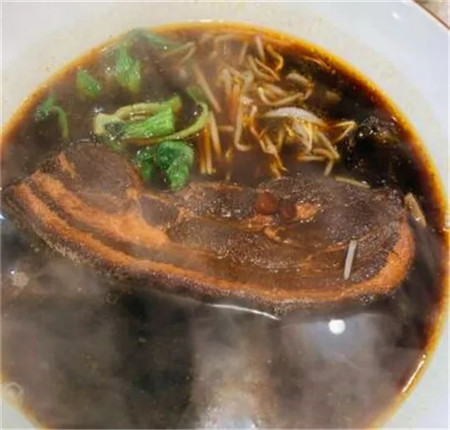 招牌猪大肠面,这一碗,肥肠给的不少,弹糯脂香的猪大肠被老卤浸润,不油不腻,脆嫩爽口,面应是手擀面,爽滑劲道,面汤浓郁。