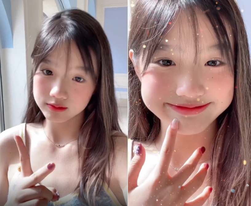 让张思捷出圈的是一个在阳光下对着镜头微笑的视频。视频中她穿着黄色围边的吊带上衣,黄色将皮肤衬托的白嫩光滑,在阳光下肌肤透亮笑容甜美,红色美甲更是为整个画面增色不少,婴儿肥让她显得清纯又美好。