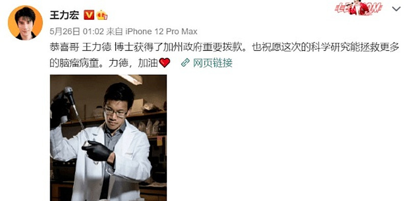 王力宏的爷爷、爸爸、哥哥都是高知,而他们的老婆也都是高知。