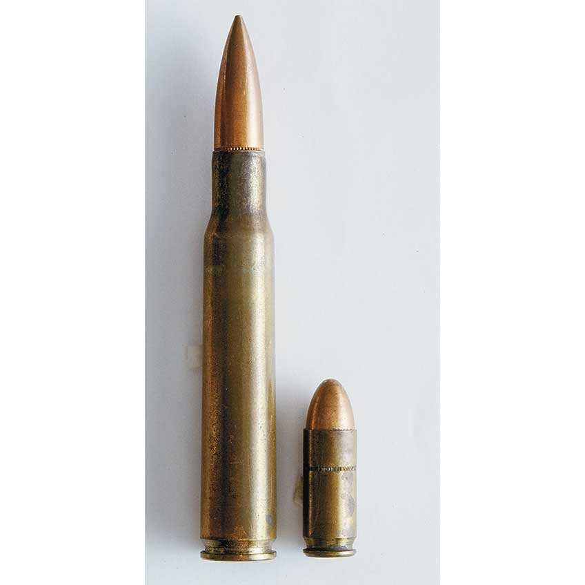 这个佩德森装置装上以后,用的就不是原来春田M1903的.30-06步枪弹了,而是.30-18手枪弹了,使用40发的弹匣供弹。.30-18的弹头直径和.30-06的直径是一样的,枪管可以直接用,佩德森装置直接连接在春田1903上是没有问题的。