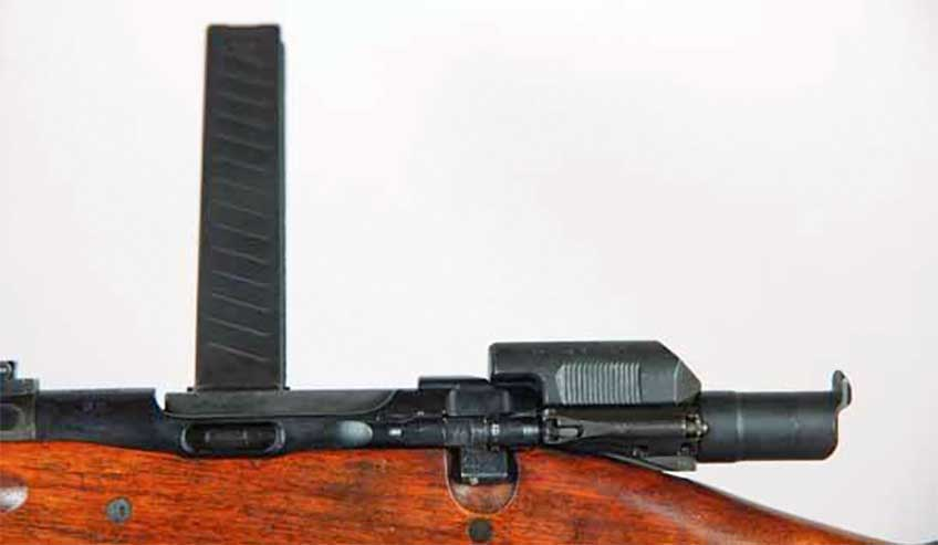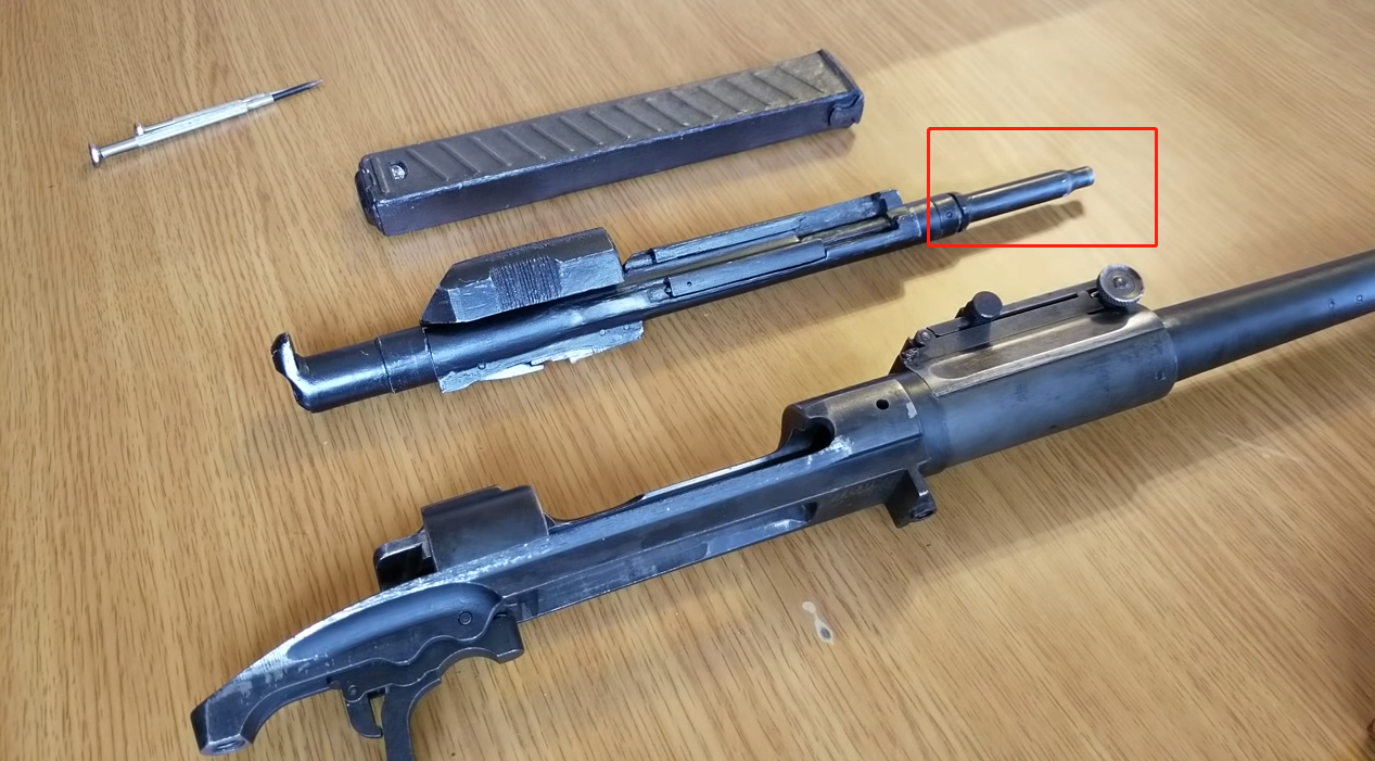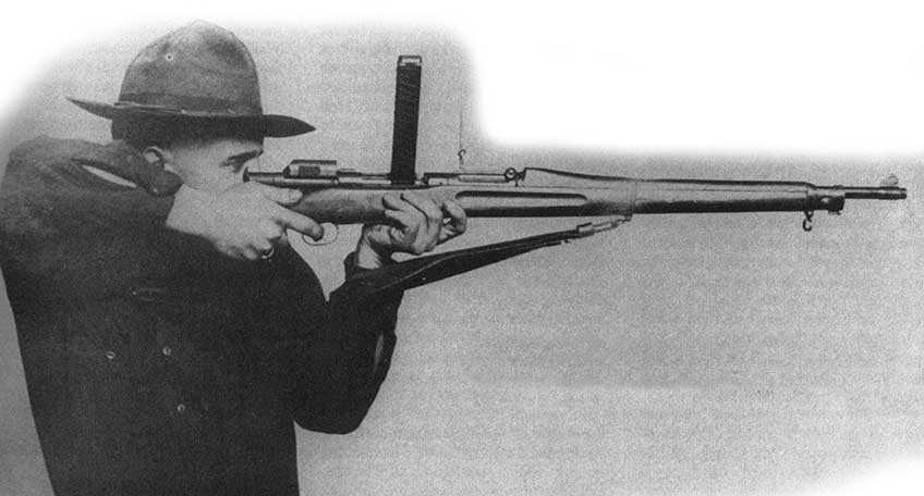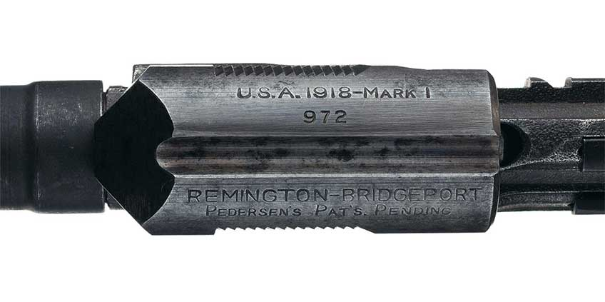 于是乎,一个叫佩德森装置的东西诞生了。具体用法就是,在原有的春田M1903的基础上,将枪机拆了,然后将佩德森装置在原来枪机的位置上装进去,锁定好,然后装了弹匣,一杆半自动步枪就诞生了。