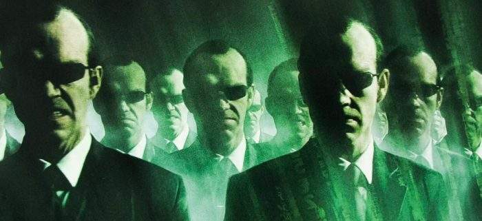 高科技费了那么大的劲儿,绕了那么大的弯儿,企图制造虚拟真实的幻境尚未达成,上古之人采摘点儿天然植物和花朵或直接嚼上几片叶子,或熏一熏烟,酿一壶酒,就与神灵相会了。西藏密宗的无药派高手,只需通过观想和持咒就能与本尊身心俱和,双身双修,对比一下高科技的设备,不是插管儿就是躺在ICU仪器中的僵尸模样,还间歇式地炸尸,实在是怪可怜的。在虚幻的母体里,要是碰到戴着墨镜的杀毒软件史密斯们,就非死即伤,插翅难逃了。《黑客帝国》中,这款杀毒软件不断在迭代升级,以纯粹为最高理念的理想主义、完美主义,导致的是杀毒软件自身成为最大的病毒,开始无限度地自我复制,被病毒感染者皆变身为史密斯本尊,统一面孔,统一造型,统一意志,统一标识,统一的墨镜后面是统一的火眼金睛,一切被视为异端的牛鬼蛇神皆无处藏身。