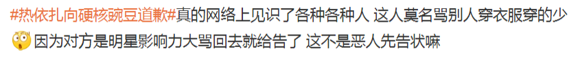 某名网友直接在社交平台,指名道姓地辱骂热依扎,用词粗鄙、充满了人身攻击。