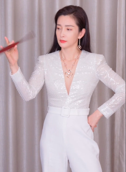 她在视频里穿了身白色套装,短款亮片长袖搭配高腰阔腿裤,虽然上衣是深V设计,但是开口很小,李冰冰也没有刻意挤出什么事业线。我实在是没看出哪里有什么不得体处,只看到了一个优雅大气的美女。
