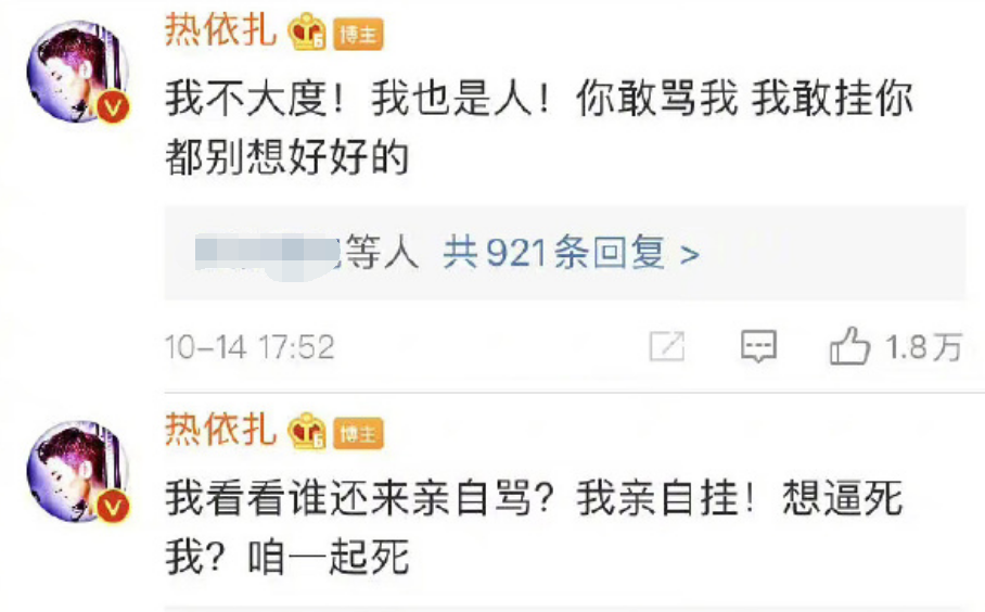 “拽姐”热依扎选择和她硬刚,直接转发她的辱骂,网络对质。这场明星与素人的骂战,愈演愈烈,两人都闹上了法庭。