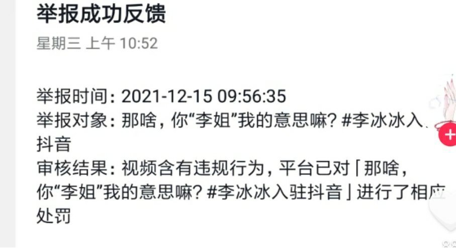 某位儿科医生直接将李冰冰的这条视频向平台举报了,因为他觉得李冰冰这样的穿着,会对未成年人造成不良影响。这么匪夷所思的理由,平台竟然判定举报成立,并下架了李冰冰的这条视频。