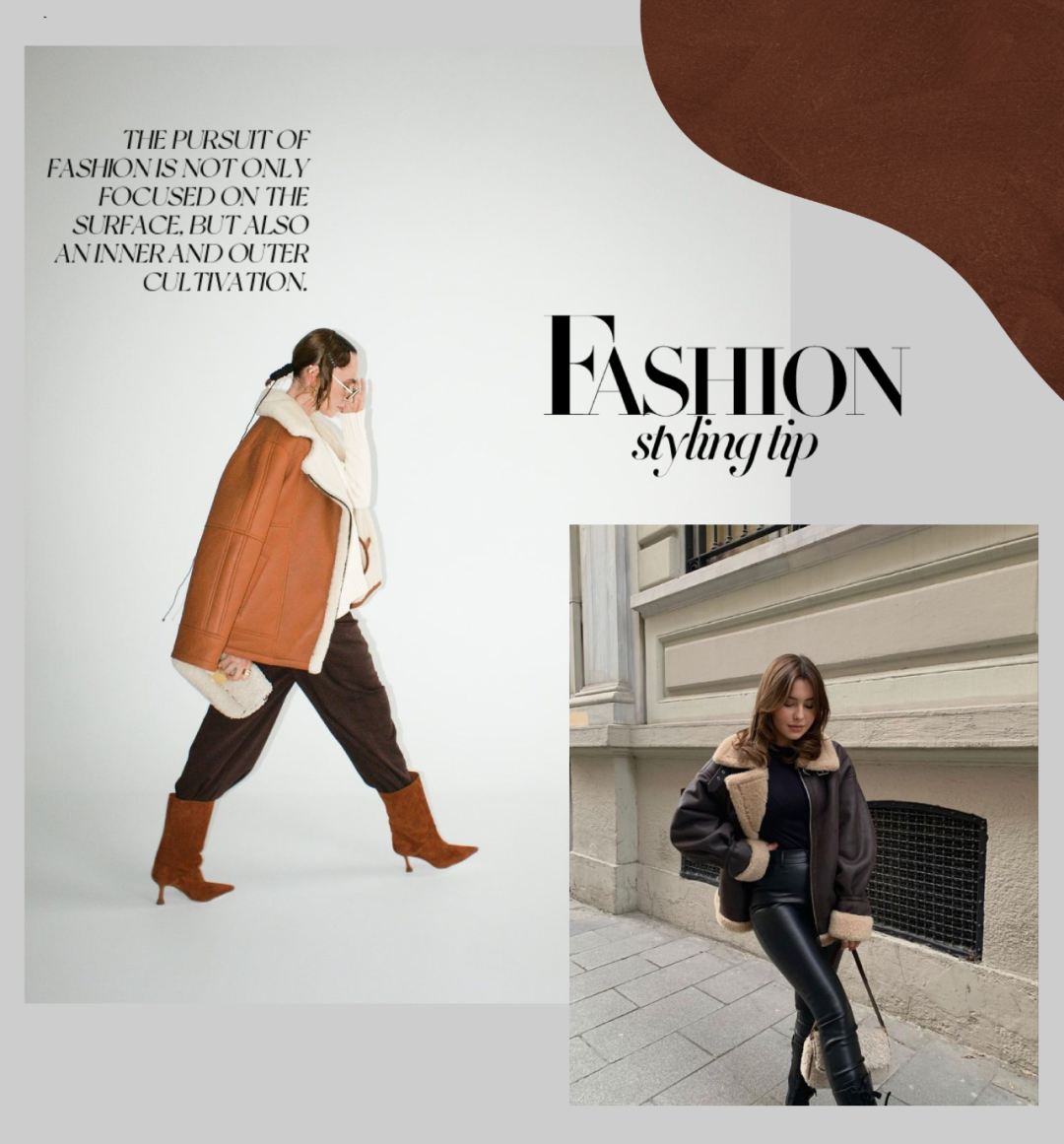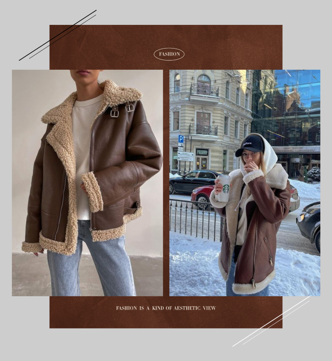 相比黑色纯粹,它似乎保留着一份粗砺,接近大地,也更有原始皮革的风味。当它佐以温暖的羊羔毛包裹身体,是时间赋予的天然之美,让身着的人显得既复古而又生机勃勃。