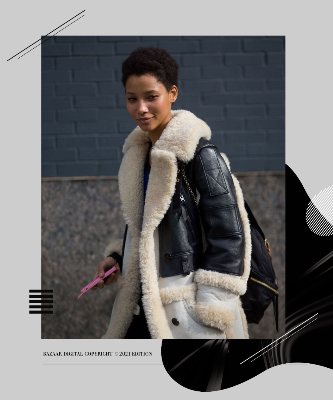 可要说什么单品最能在这个隆冬给到时髦精们深切的安全感,定当是皮毛一体夹克无疑:皮的扎实、毛的稳重,令它虽然没有羽绒圆钝,又不至于像皮草那样澎湃,但就是随时扛得住这上班路上猛烈的风雪,为你的出行保驾护航。