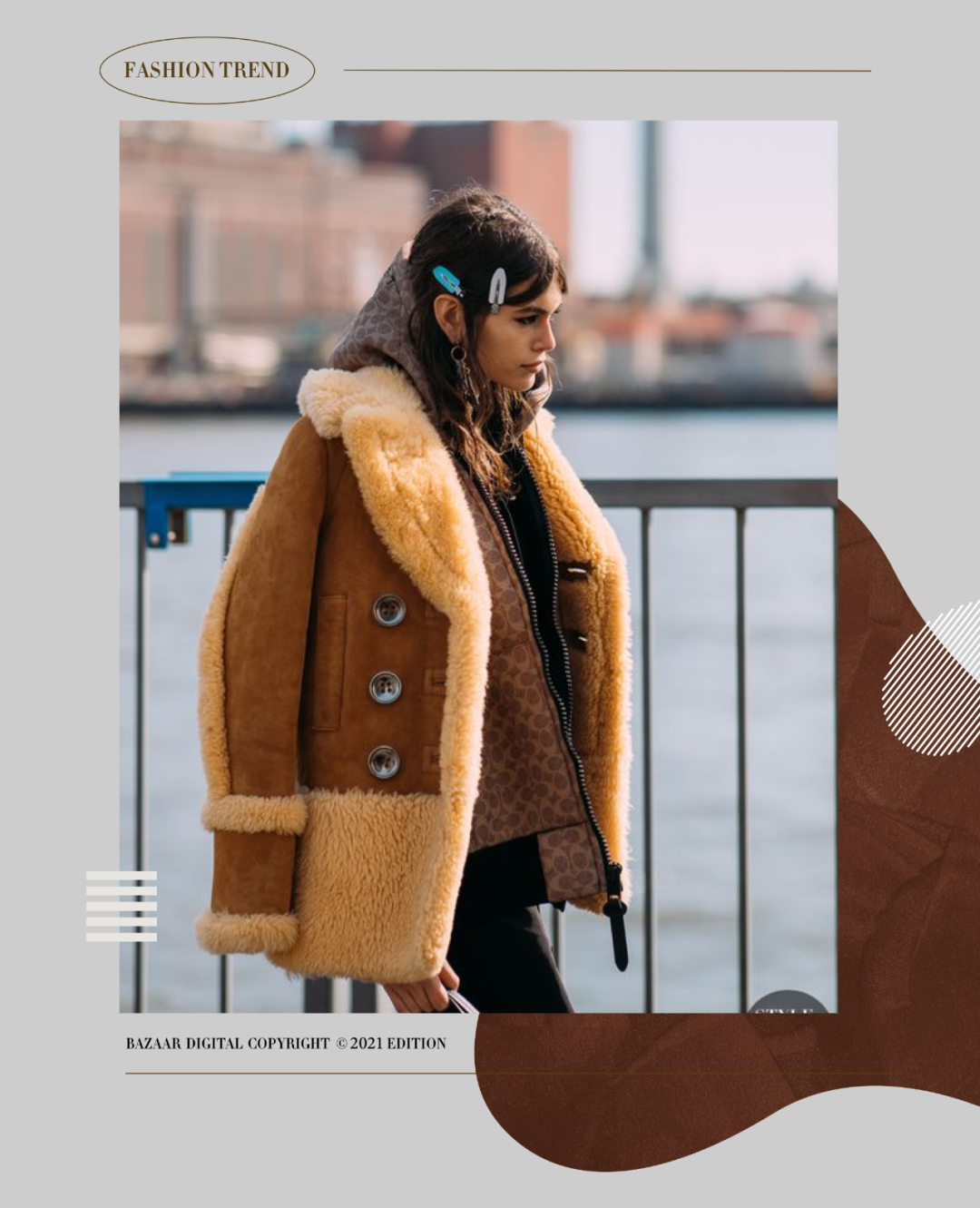 而在严寒的地区要想确保温暖最大化,廓形足够宽松的皮毛一体此刻就现出了优势——毕竟能在里面塞下层层叠叠的羊毛制品还不显臃肿才是王道。