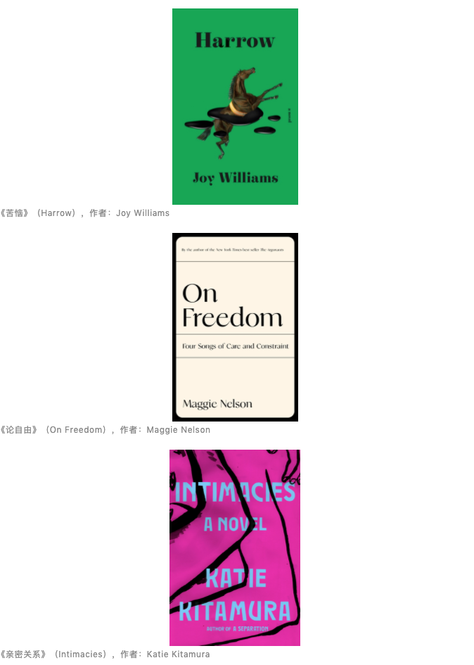 在入选的20本图书中,有的获得过不少奖项或提名。比如书单中的《亲密关系》(Intimacies)、《威廉·杜波依斯的情诗》(The Love Songs of W.E.B. Du Bois)、《没人在谈论这个》(No One Is Talking About This)在前不久也入选了《纽约时报》2021年度十大好书,《没人在谈论这个》还在今年夏天入围了布克奖长名单。