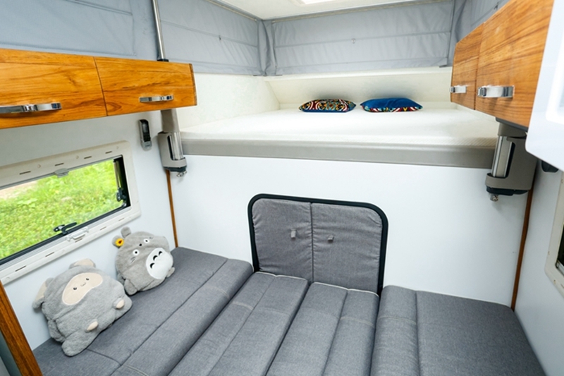 第二在睡眠问题上,对于旅美速腾越野房车车主来说,宽敞舒适的睡眠区域满足睡眠需要,只要困了累了,就可以找到合适的地方小憩一会。像福特F150LTD自由者越野房车上就有1.8*1.9的超大额头床和沙发拼床,2-5人休息没问题。而德国曼卡车越野房车上,更有电动升降床和二层超级豪华乳胶大床,2-6人睡眠体验更出众。